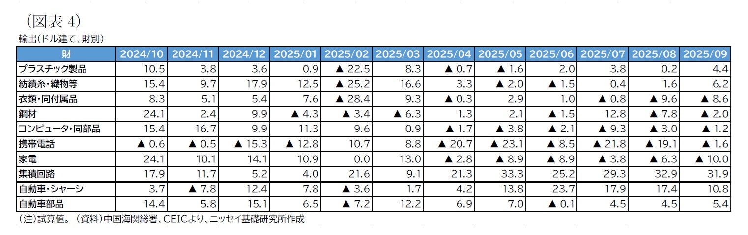 - 中国の貿易統計(25年9月)~輸出、輸入とも加速。対米輸出は減少が続く
