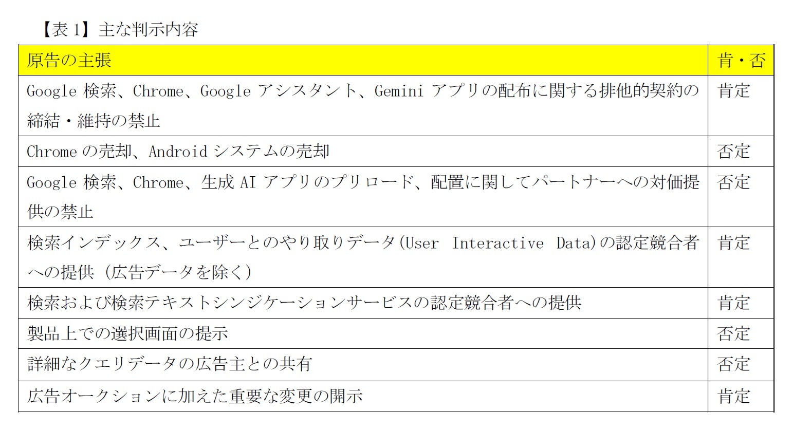 - 米連邦地裁、Googleへの是正措置を公表~一般検索サービス市場における独占排除