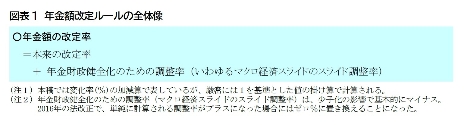 本稿では、これらの数字の意味を理解するために、年金額改定のルールのうち本来の改定ルールについて、意義や経緯を確認する。